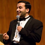 New MITSO conductor Adam K. Boyles talks to the audience before Bach’s Brandenburg Concerto No. 3, which was played by a subset of the orchestra. This past Friday, Oct. 26, MITSO performed a concert featuring pieces from Kevin Puts, Johann Sebastian Bach, Edward Elgar, and Sergei Rachmaninoff.