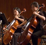 Tiffany Ho ’11 (left, from Wellesley) and Minhee Sung ’10 play cello during Millennium Canons, by Kevin Puts. The MIT Symphony Orchestra performed this past Friday, Oct. 26 with new conductor Adam K. Boyles. The concert featured pieces from Kevin Puts, Johann Sebastian Bach, Edward Elgar, and Sergei Rachmaninoff.