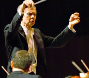 Richard Pittman, music director of the New England Philharmonic, concentrates on bringing the best out of his orchestra at a concert on Saturday night in Kresge Auditorium.