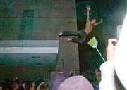 Pumpkins explode as they hit the ground at the end of their 21-story fall from the roof of the Green Building during last Saturday's Pumpkin Drop.