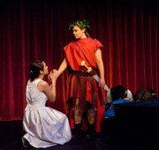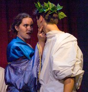 Queen Tamora, played by Holly B. Laird ’07, Empress of Rome, takes advantage of her power over Emperor Saturninus, played by Yuri A. Podpaly G. The MIT Shakespeare Ensemble is performing Titus Andronicus on Nov. 1–3 in Kresge Little Theater.