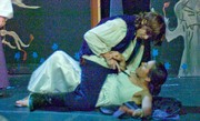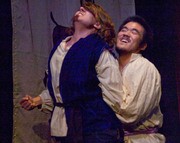 Queen Tamora’s sons, Chiron (Sabrina M. Neuman ’09, left) and Demetrius (Akira Kobayashi ’10, right), fight over who will rape Titus’ daughter Lavinia. The MIT Shakespeare Ensemble is performing Titus Andronicus on Nov. 1–3 in Kresge Little Theater.