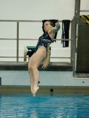 Doria M. Holbrook ’08 lands a dive in the 1-meter diving event in a meet against Wellesley College Wednesday, Nov. 14. Holbrook took the top score in the event, helping drive MIT to a 179-118 victory.