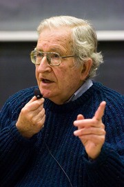 Professor Noam A. Chomsky lectures on the role of universities and activism to a packed 26-100 on Tuesday afternoon.