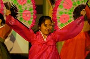 Janina Kim of Wellesley College performs during the Buchaechum fan dance at the Korean Student Association’s Culture Show held Sunday in Walker Memorial.