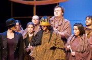 In the Musical Theatre Guild’s production of “Pippin,” Mia A. Shandell ’10 watches over Pippin (Benjamin Moncivaiz ’11) as he is crowned king after he killed his father for being an unjust ruler.