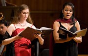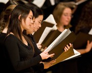 Elizabeth A. Maroon ’10 (left) and JodieMarie T. Fernandes ’09 sing with Concert Choir. The MIT Concert Choir performed Haydn’s “Theresienmesse” Mass in B flat major and Benjamin Britten’s “Festival Te Deum” on Saturday, Dec. 8. The Theresienmesse, named after the Empress Maria Theresa of the Two Sicilies, is thought to have been first performed on Sept. 8, 1799. Britten’s “Festival Te Deum” is somewhat more recent, having been composed in 1944 for the centenary of St. Mark’s Church in Swindon, England.