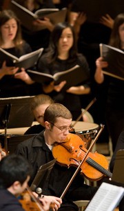 Members of the Boston Conservatory join Concert Choir. The MIT Concert Choir performed Haydn’s “Theresienmesse” Mass in B flat major and Benjamin Britten’s “Festival Te Deum” on Saturday, Dec. 8 in Kresge Auditorium. The Theresienmesse, named after the Empress Maria Theresa of the Two Sicilies, is thought to have been first performed on Sept. 8, 1799. Britten’s “Festival Te Deum” is somewhat more recent, having been composed in 1944 for the centenary of St. Mark’s Church in Swindon, England.