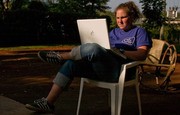 Tish Scolnik ’10 takes her work outside at Mobility Care in Arusha, Tanzania to catch some rays with her local co-workers.