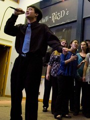 Gabriel A. Ha ’11 sings the lead vocals to the MIT Cross Products’ rendition of “You Are a Child of Mine.” The Cross Products performed their fall concert in 10-250 on Saturday, Dec. 8.