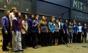 Alumni join the MIT Cross Products for their alumni song, “The Reason We Sing.” The Cross Products performed their fall concert in 10-250 on Saturday, Dec. 8.