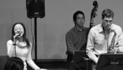 Two MIT jazz combos performed in Killian Hall on the evening of Tuesday, Dec. 4, Here, Chih-yu Chao G (left) sings Clifford Brown’s “Sandu” as A. Keala Kaumeheiwa, the ensemble’s coach, plays bass and Maxwell N. Krohn G plays the saxophone.