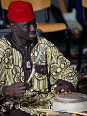 Moha Seck plays Sabar, a style of Senegalese dance and music. Rambax MIT presented a “Takusaanu Dakar” in Lobdell on Saturday, Dec. 8. The night consisted of traditional Senegalese music and performances by Group Saloum. Rambax is co-directed by artist-in-residence Lamine Touré (who is also a member of Group Saloum) and Patricia Tang.