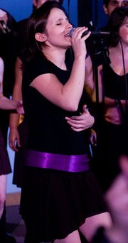Cecilia R. Louis ’10 belts out Amy Winehouse’s “Rehab” at the Chorallaries’ annual fall concert in 10-250 Saturday.