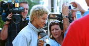 Local media representatives barrage Star A. Simpson ’10 with questions after she was arraigned on charges of disorderly conduct and possession of a hoax device for wearing an innocuous LED device to Logan Airport on Sept. 21, 2007.