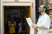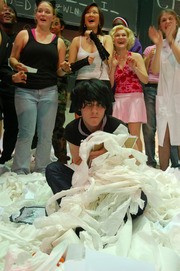 The Chorallaries wait to perform as they watch Benjamin M. Schwartz ’06 read off the list of people to be offended.