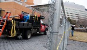 Don Contois of the Steelco Fence company helps install a fence in preparation for the construction of MIT Building 76, which is scheduled to open in 2010. The new building, which will house the David H. Koch Institute for Integrative Cancer Research, will be constructed along Main St. between the Stata Center (Building 32) and the Koch Biology Building (Building 68; also named for David H. Koch ’62).