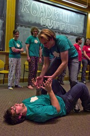 Adam C. Love ’07 and Benjamin M. Park ’10 open the show with the improvisational game ‘Freeze’ during The Jug Show by Roadkill Buffet on Feb. 29 in 6-120.
