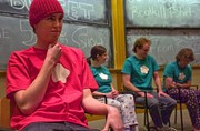 John U. Gardner G, an alum of Season 4 of The CW’s “Beauty and the Geek,” participates in a dating show game with other members of Roadkill Buffet on Feb. 29 in 6-120.