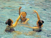 Karen L. Chu ’08, Lucia T. Tian ’08, and Anna J. Simon ’10 (clockwise from left) of the MIT synchronized swimming team compete in the 2008 East Zone Regionals held last weekend at Canisius College in Buffalo, New York.