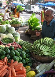 In Bangalore, vegetable stands line commercial streets and provide easy access to fresh produce.