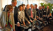 President Susan Hockfield, MIT Corporation Life Member David H. Koch, Mayor of Cambridge Denise Simmons, and other notables break ground for the new David H. Koch Institute of Integrative Cancer Research on Friday.