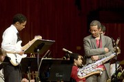 Donald Byron looks on as Daniel E. Bickerstaff ’10 plays a guitar solo during Byron’s own “Joe Btfsplk.” The Festival Jazz Ensemble presented “Don Byron’s Musical Worlds Part 1” this past Friday, March 7 in Kresge Auditorium. Byron, an MLK Visiting Professor as well as a Grammy-nominated composer and clarinetist, played the saxophone and the clarinet while directing part of the concert.