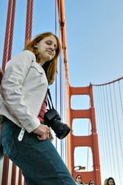 Clare Bayley ’10 stands along the pedestrian sidewalk on the north end of the Golden Gate Bridge in San Francisco, CA on Sunday, March 23.