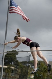 Karin E. Fisher ’11 clears the bar in the pole vault. The MIT men’s and women’s track and field teams spent Spring Break training in Claremont, California, and capped off the week with a meet held in San Diego by Point Loma Nazarene University.