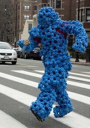 Aaron E. Ramirez ’10, the “Foameez Monster,” walks across the 77 Massachusetts Ave. crosswalk on Saturday after the MIT Hobby Shop open house. Foameez are a commercial toy first invented at the Hobby Shop by Kenneth Stone ’72 and Professor Alexander H. Slocum.