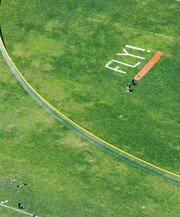 Members of the flying club prepared for the flyover with a “FLY” message on Briggs Field.