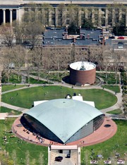 Killian Court, Building 10, the Great Dome, the Little Dome, Building 3, and Building 4 as seen from the air on April 26, 2008.