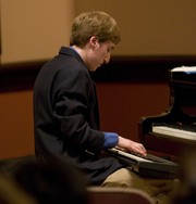 The so-called 7:30 and 5:30 Jazz Combos played a joint end-of-semester concert last Tuesday, April 29 in Killian Hall. Steven J. Levine ’11, pictured, plays an electronic keyboard during the 7:30 Combo’s performance of “Superstition,” originally by Stevie Wonder.