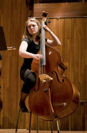 Maria A. Frendberg ’11 strums the double bass during the world premiere of Windborn(e) by Gabriel SenaneS in the MIT Wind Ensemble’s concert on Friday night.
