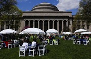 Students relax in Killian Court on Monday afternoon at the MIT Spring Picnic celebrating the retirement of Dean for Student Life Larry G. Benedict.