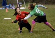Daphne L. Wang ’08 flicks the disc past her defender in sMITe’s (Women’s Ultimate team) semi-final match against Dartmouth College at New England Regionals in Lancaster, MA. on Saturday.