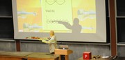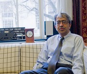 Oxford mathematician Marcus du Sautoy explains how the waveform of a violin’s sound can be expressed as a linear combination of pure tones. The explanation served as a stepping stone toward explaining the utility of the famous Riemann hypothesis. Sautoy presented a lecture entitled “The Music of the Primes” yesterday evening in 26-100.