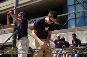 MIT Steel Bridge Team members Adam Benjamin Talsma ’10, left, and Quinn A. Vollmert ’08, right, construct a bridge in front of the Student Center on May 5 while their teammates Jose G. Cano ’09, Tracy R. Takemura ’08, and Matthew A. Pires ’10 look on. The team will be going to nationals on May 23 and 24 at the University of Florida.