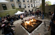 Crowds watch as fire extinguisher-wielding residents spray down the fire pit right after it was lit to kick off Steer Roast 2008. MIT Senior Haus’ annual weekend-long Steer Roast party started at 5 p.m. on Friday, May 2 with the lighting of the fire pit and traditional mud wrestling (featuring Haus housemasters Henry and Cynthia Jenkins) and continued until well past the bands finished playing late Saturday night.