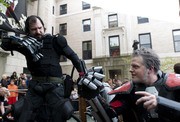Steer Roast 2008 Veep Erik D. Fogg ’09 (right) and Hani Sallum ’96 (left) pose for the cameras in their armored costumes at the kickoff for Steer Roast 2008. MIT Senior Haus’ annual weekend-long Steer Roast party started at 5 p.m. on Friday, May 2 with the lighting of the fire pit and traditional mud wrestling (featuring Haus housemasters Henry and Cynthia Jenkins) and continued until well past the bands finished playing late Saturday night.
