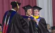 Jason R. Kelly G receives his doctoral hood for completing his degree in Biological Engineering at the hooding ceremony in Rockwell Cage yesterday.
