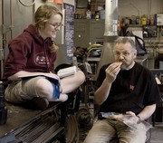 Kaitlyn P. Becker ’09 (left) and Martin L. Demaine take a break at the Glass Lab with food and studies.
