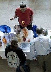 Martin L. Demaine talks to potential buyers at the Mother’s Day Glass Lab sale on May 5.