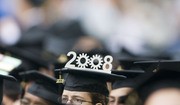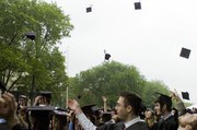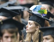 Department of Chemistry graduate Ziliang “Carter” Lin ’08 wears a cap decorated with the chemical symbol for chlorine during this year’s Commencement ceremony, which was held June 6 on Killian Court. Several other students in the department wore caps bearing the symbols of different elements.