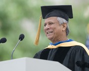 Muhammad Yunus, recipient of the 2006 Nobel Peace Prize, delivers the Commencement address in front of thousands of graduates and their family members. This year’s Commencement ceremony was held on June 6 on Killian Court.