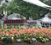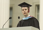 Temporary flower beds flank the stage as Muhammad Yunus, recipient of the 2006 Nobel Peace Prize, delivers the Commencement address. This year’s Commencement ceremony was held June 6 on Killian Court.