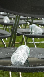 Heavy rains during the night and in the early morning fill every seat with rain water. Much to everyone’s relief, the rain ended just before the faculty and graduates entered Killian Court for this year’s Commencement ceremony held June 6.