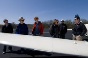 Flying Club members and staff reporter Emily Prentice (far left) talk planes at the Provincetown airport. Andreas Mershin piloted a 30-year-old Cessna while Henry Hallam ’09 (third from left) took his group down in a much newer Piper (pictured).
