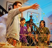 Devon D. Sparks ’12 discusses geodesic constructions at a TEP event on Sept. 2 during rush.