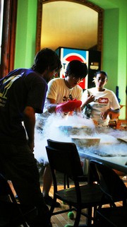 Christopher S. Chin ’12 makes liquid nitrogen ice cream along with the brothers of TEP on Sept. 2 during rush.
